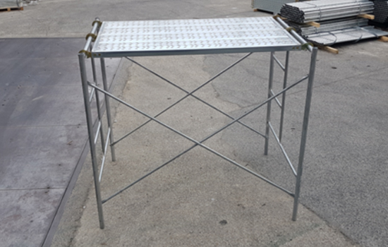 - 조립식비계, 강관파이프 등에 설치하는 자재이며, 생김새와 같이 가시설 상하를 연결하는 계단이 되는 발판